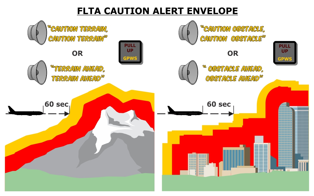 Şu ana kadar bahsettiğimiz 7 modun, bazıları GPWS sisteminde de vardı. Ancak EGPWS ile birlikte çok önemli bir geliştirme yapıldı, uçak bilgisayarlarına yeryüzündeki bütün doğal yer şekilleri ve bilinen tüm insan yapımı engeller kaydedildi. EGPWS sistemi bütün bunların üstüne anlık olarak uçağın GPS konumunu, o konumdaki çevre yükseltisini, uçuş yönünü, hızı ve irtifayı izleyerek potansiyel tehlikeleri hesaplar. Çarpışma tehlikesi varsa, olası çarpışmaya 40-60 saniye kala bilgisayar pilotu uyarmaya başlar. Bu uyarılar sesli, ışıklı ve ekranlarda beliren görüntüler yardımıyla yapılır ve “CAUTION” olarak adlandırılır.