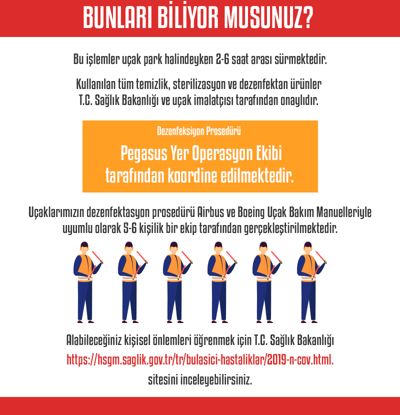• Tüm yolculara, yolcu iletişim bilgi kartları doldurtulacak. Ulusal, Uluslararası Sivil Havacılık tarafından önerilen bulaşıcı hastalıklara yönelik prosedürler katı bir şekilde uygulanacak.