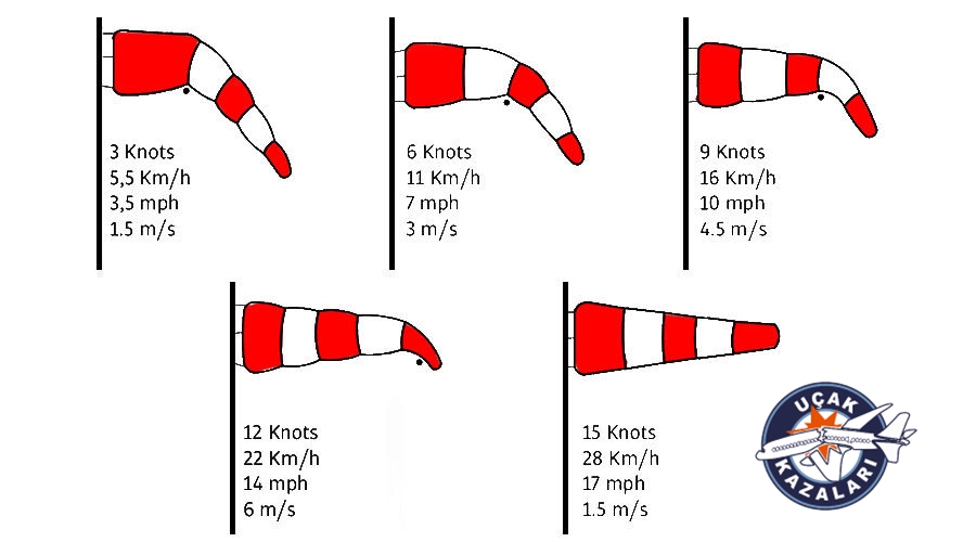 Rüzgar tulumunun nasıl çalıştığına geçmeden önce kısaca rüzgarın hızından bahsedelim. Rüzgârın hızı havacılıkta knot olarak ifade edilir. Knot, saatte 1 deniz miline eşit olan hız birimidir. Tam olarak saatte 1,852 kilometreye, yaklaşık olarak ise saatte 1.15078 kara mili ve saniyede 0,514 metreye eşittir. Rüzgar tulumlarında, rüzgar bilgisi knot olarak gözlemleniyor.