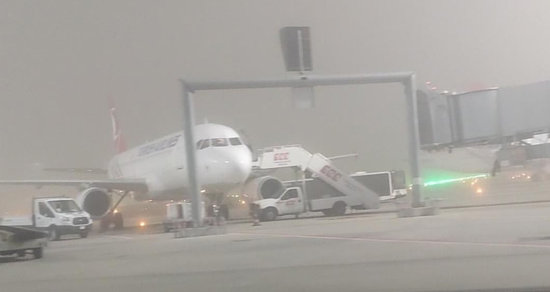 Uçak seferlerinde kısa süreli gecikmeler yaşanırken, apronda görevli sürücülerin görüş mesafesine dikkat etmeleri istendi.