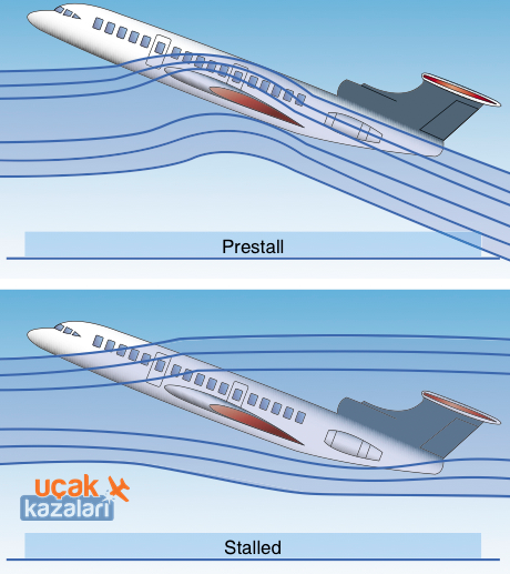 Daha detaylı anlatmak gerekirse: Uçak kanatları bir uçuş sırasında hava ile belirli bir açıdan karşılaşır. Buna ”hücum açıları” denir. Uçakta yaşanan bir durumdan dolayı ”hücum açısı” arttırıldığında, kanatların alt ve üst yüzeyleri arasında girdaplar ve akım sorunları yaşanmaya başlar.