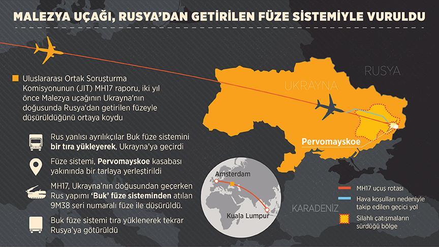 2014 yılında Amsterdam’dan Kuala Lumpur’a hareket eden Malezya hava yollarına ait yolcu uçağı Ukrayna’nın Donestk bölgesinden geçerken düştü. Uçağın düşme nedeni ise füze ile vurulması olarak açıklandı. Malezya hava yollarına ait bu uçak Sovyet yapımı olan BUK füzesi ile vurulduğu yapılan incelemeler sonucunda açıklandı. Uçağın vurulması sonucu 298 kişi hayatını kaybetti. Uçak 17 Temmuz 2014 yılında düşürüldü. Bu olayda tüm gözler Rusya’ya çevrildi. Fakat Rusya bu durumu kabul etmedi. Daha sonra Ukrayna tarafından yapılan açıklamaya göre uçak Donetsk bölgesinde Rus yanlısı teröristler tarafından vurulduğu söylendi.