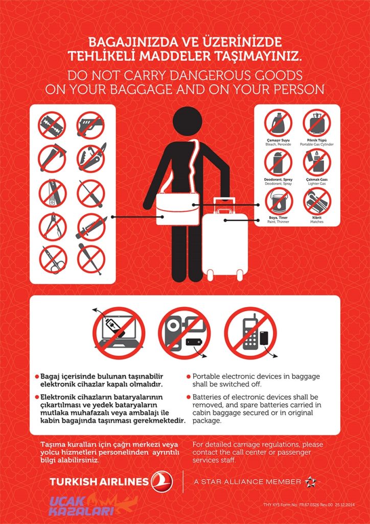 Uçakta taşınması yasak olan eşyalara dair kurallar yolcu güvenliği için oluşturulmuştur. Bu sebeple bu tip kurallara uymayan yolcular yasaklı eşyaların çıkartılması şeklinde gerekli bilgilendirme ve uyarılarla karşılaşırlar.