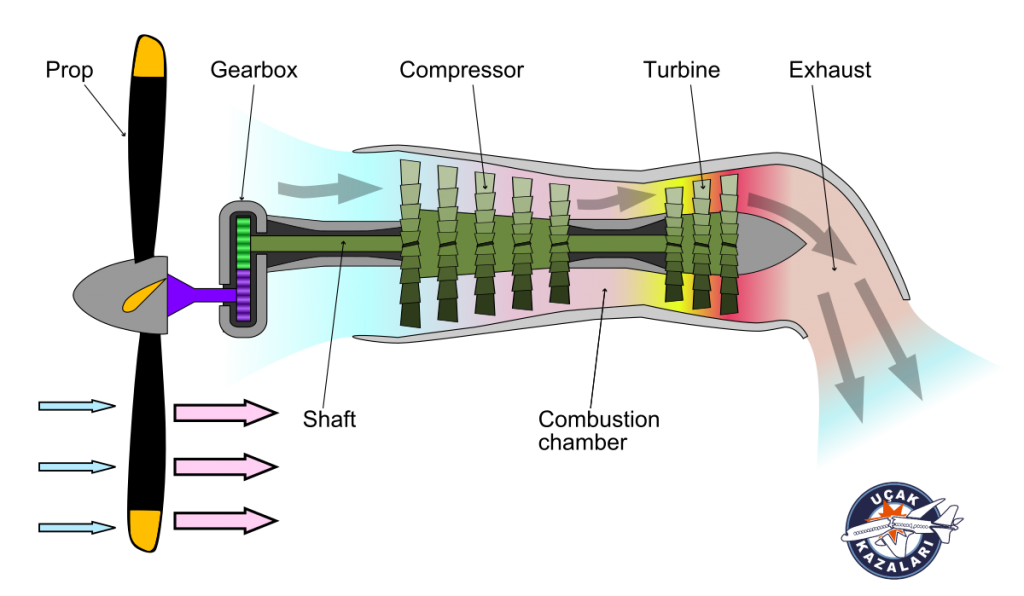 Bir turboprop motoruna ait şekli aşağıda görebilirsiniz.
